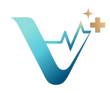 Simbol “V” merepresentasikan Vitality, Value, dan Vigilance—kehidupan, nilai, dan ketelitian medis. Garis denyut jantung menegaskan komitmen kami terhadap standar kesehatan, sementara simbol “+” melambangkan pertolongan dan harapan.